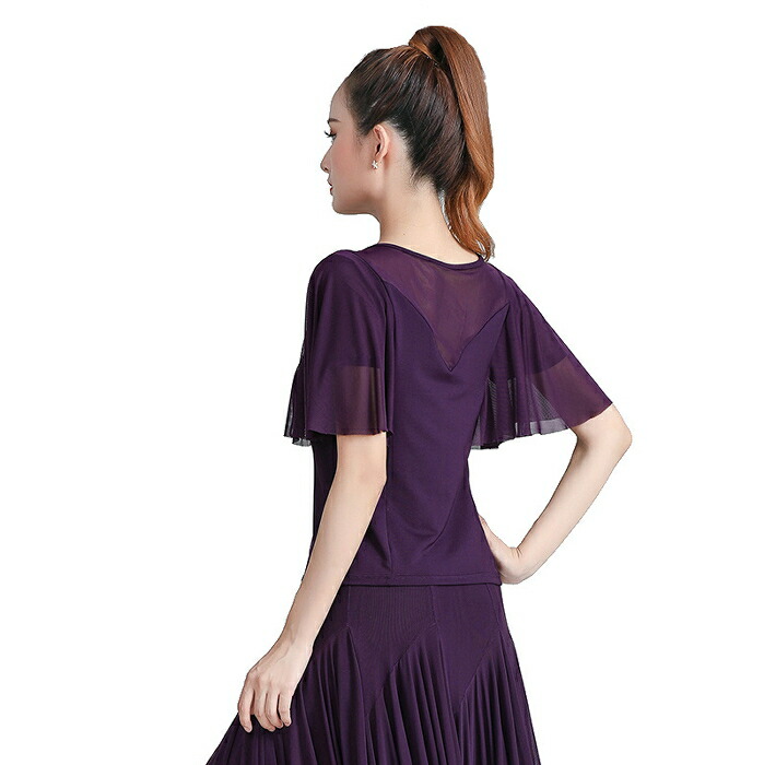着痩せ効果絶大 フリル袖 トップス 社 体操 ダンス 社交ダンス ウェア 人気 ブラック レッド パープル ブルー