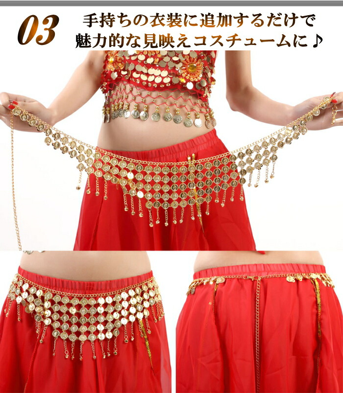 ベリーダンス ヒップスカーフ コイン ヒップベルト ゴールド シルバー 金 銀 ダンス チェーン サンバ コスチューム ポールダンス レディース キッズ 子供 プロ ミカドレス cr176-p 初心者