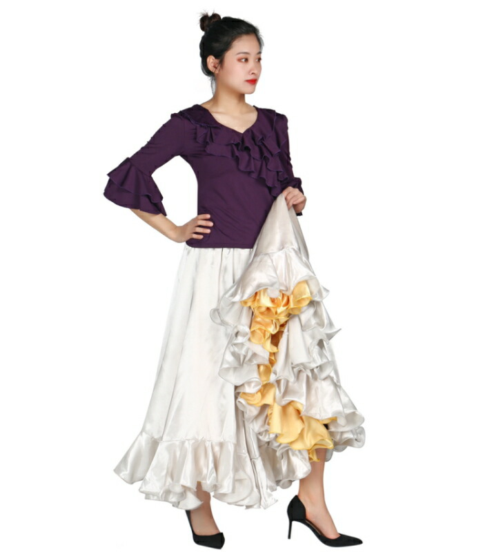 キッズ スカート ロングスカート 子供 ダンス 衣装 サテンスカート フレアスカート ドレス ペチコート パニエ フラメンコ衣装 ラテンダンス 社交ダンス コーラ ベリーダンス