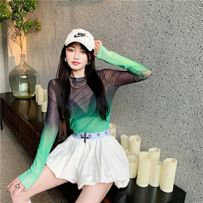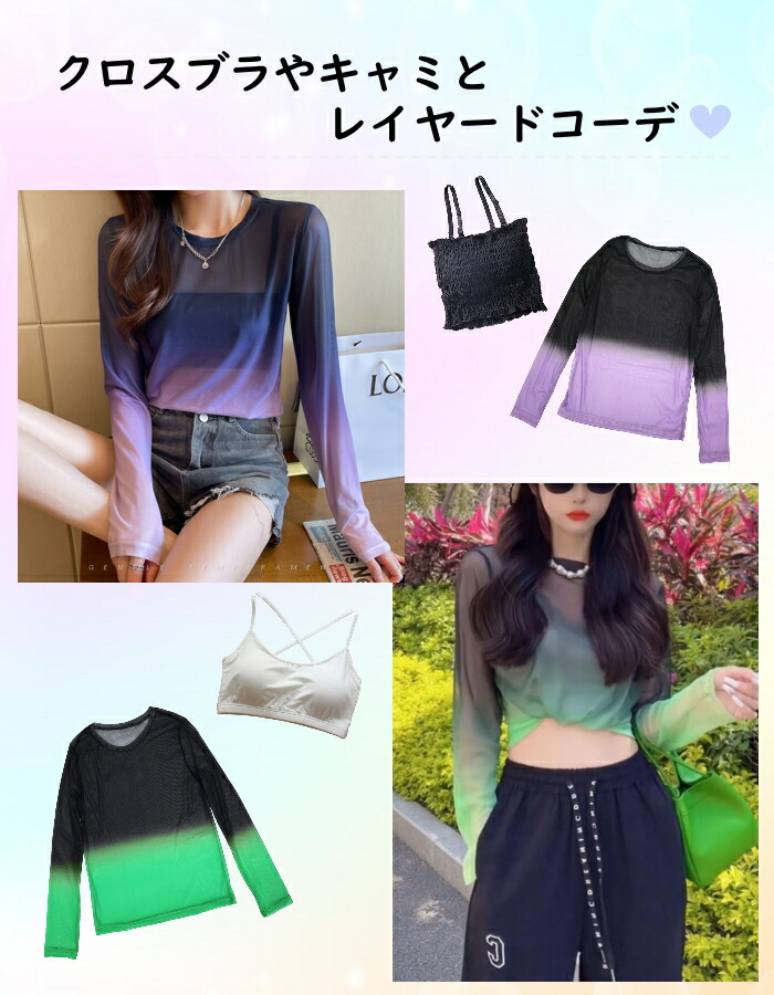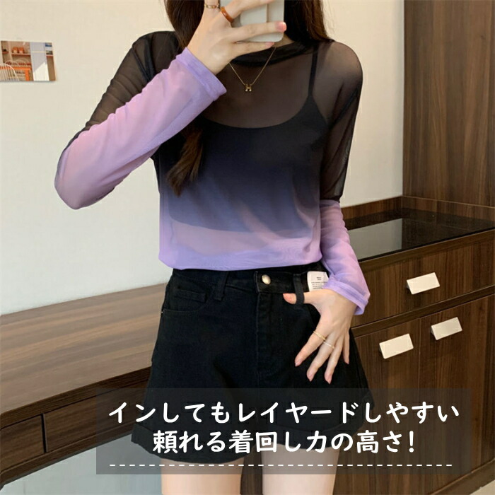 着やせ効果絶大 シアートップス シースルー トップス ラウンドネック ダンス衣装 レイヤード シアー 長袖 レディース 女性 大人 ブラウス 透け感 セクシー インナー カットソー 韓国ファッション
