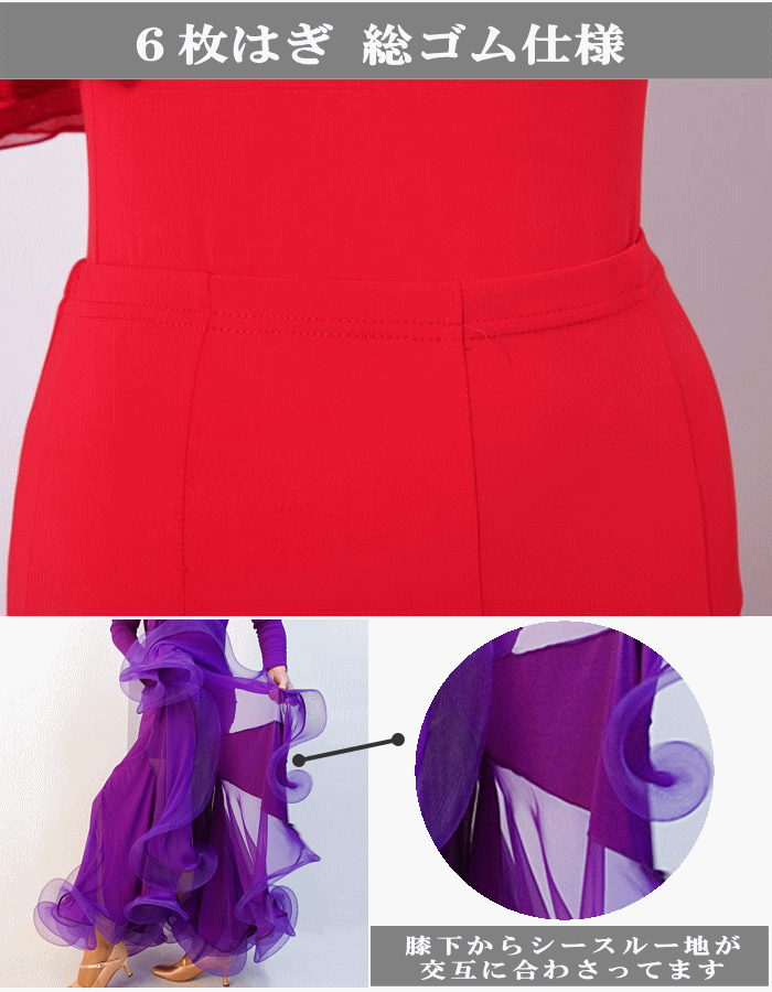 社交ダンス ドレス 衣装 スカート ボ レディースファッション 通販 ブラック レッド ブルー パープル グリーン ライトグリーン ピンク