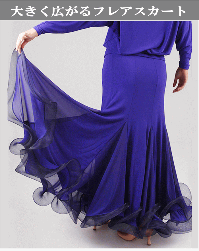 社交ダンス ドレス 衣装 スカート ボリュームフレア ロングスカート フラメンコ ペチコート パニエ シフォン マキシ丈 ベリーダンス ダンス衣装 ジャズダンス コスチューム ステ ラテンダンス