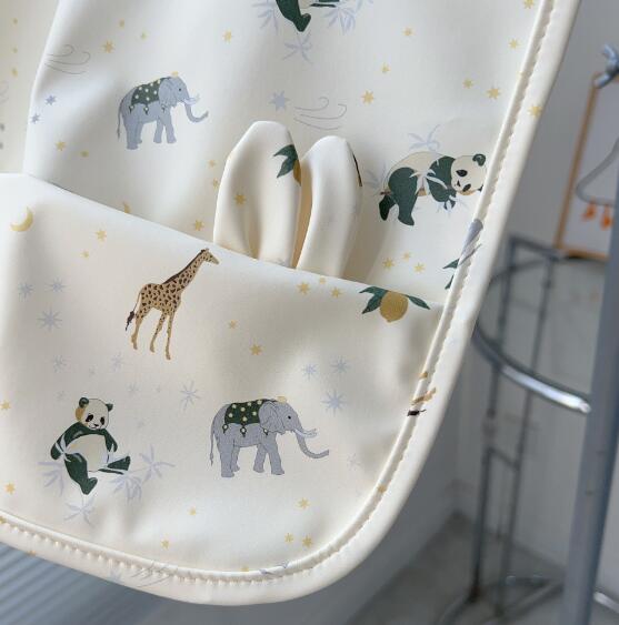 お食事エプロン6デザイン赤ちゃんベビー離乳食防水女の子男の子ビブスタイポケット韓国おしゃれ可愛い袖なし ナチュラルボタン保育園ポリウレタンエプロン