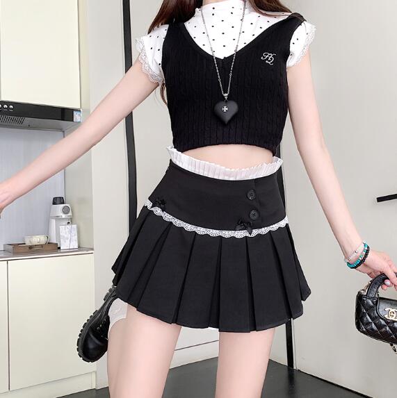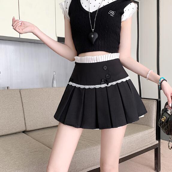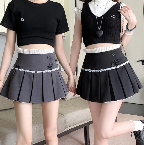 リボンキュロットスカパン2色黒ブラック ボトムス スカート 通販 ブラック グレー S M L XL