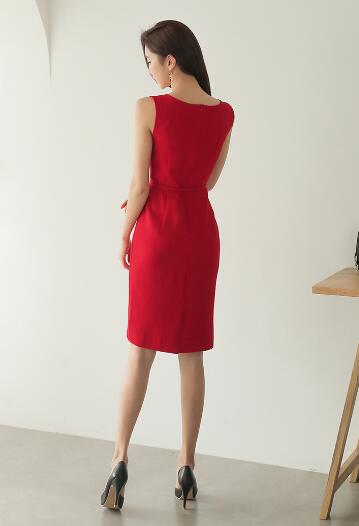 ベルトワンピース 結婚式 着痩せ おし ワンピース 超目玉商品 ベージュ レッド S M L XL