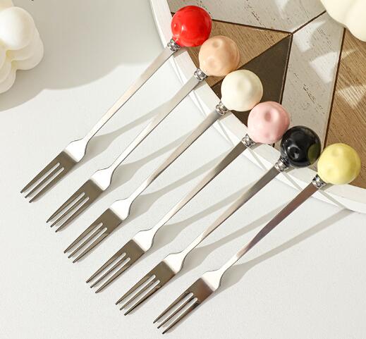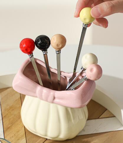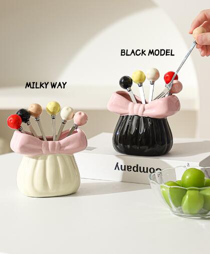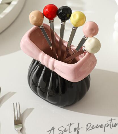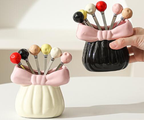 リボンステンレス製フルーツフォーク 6 食器 カトラリー グラス 箸 カトラリー フォーク 新登場! アイボリー ブラック