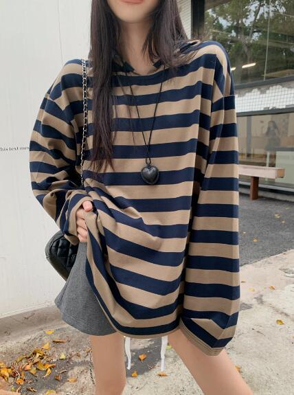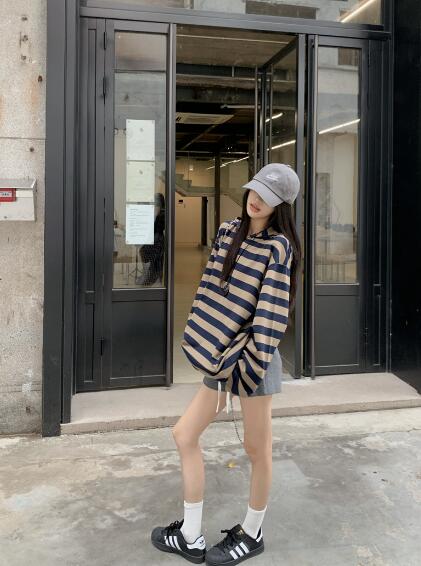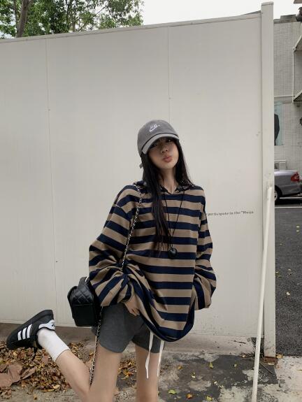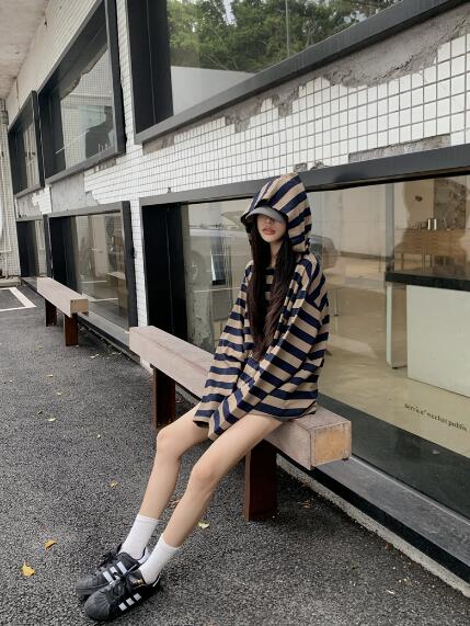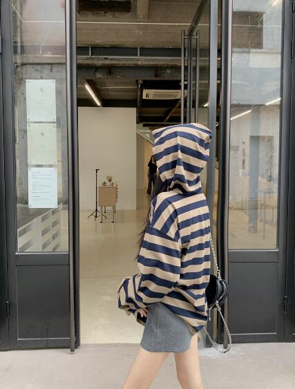 ボーダー柄フードフーディートレーナー レディースファッション 続々入荷中