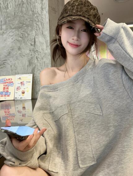 長袖 肩出しトップスカットソートレーナ レディースファッション 人気 S M