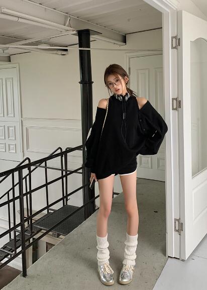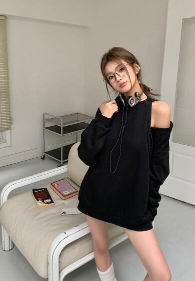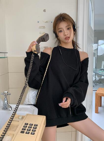 長袖 肩出しトップスカットソートレーナ トップス スウェット トレーナー 通販 ブラック グレー S M L