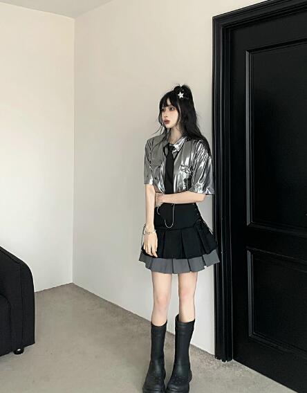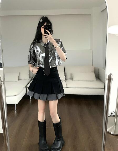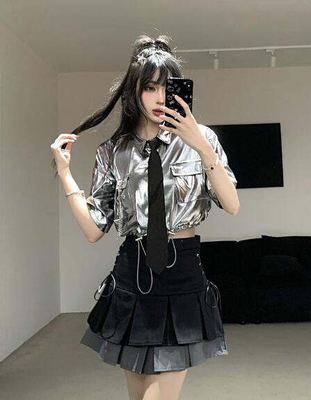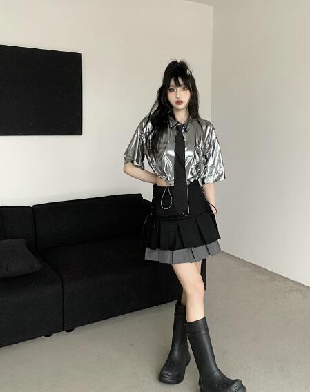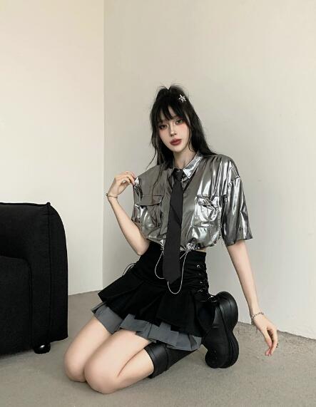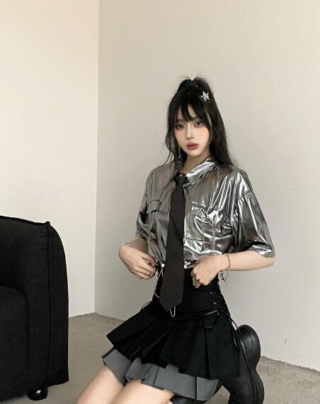 シアースリーブ ドッキングシャツ ボウタイシャツブラウス