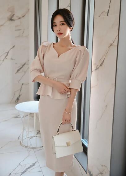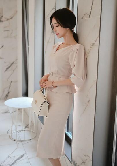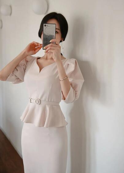 ベルト半袖ワンピース 結婚式 着痩せ レディースファッション 新登場! S M L XL