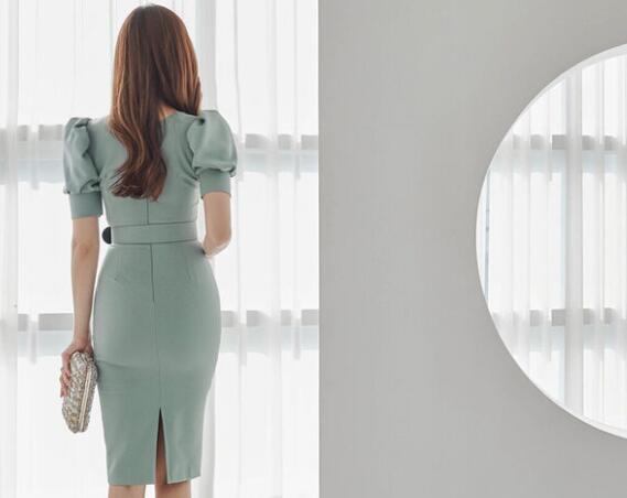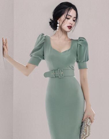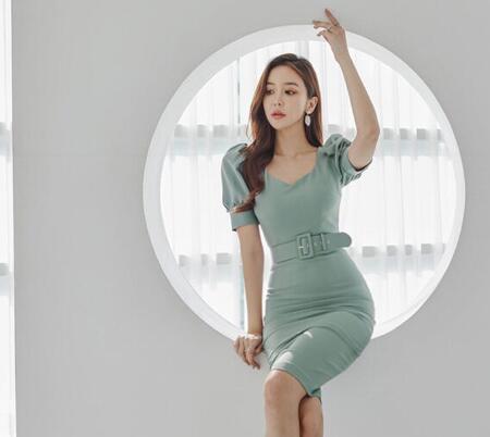 ベルト半袖ワンピース 結婚式 着痩せ レディースファッション 超目玉商品 S M L XL