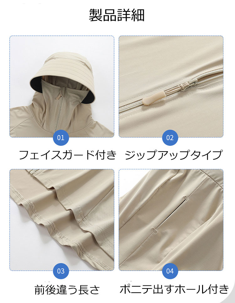 UVカット パーカー UVポンチョ ラ レディースファッション 新作 ホワイト カーキ ピンク イエロー グリーン グレー パープル