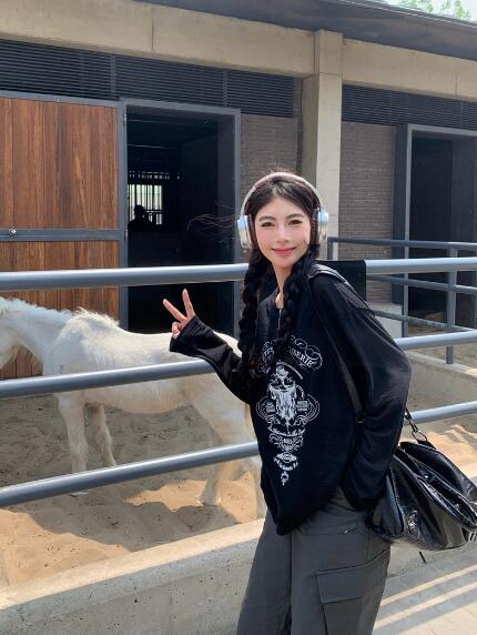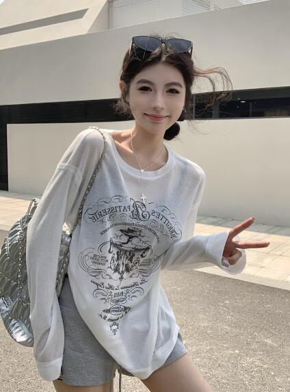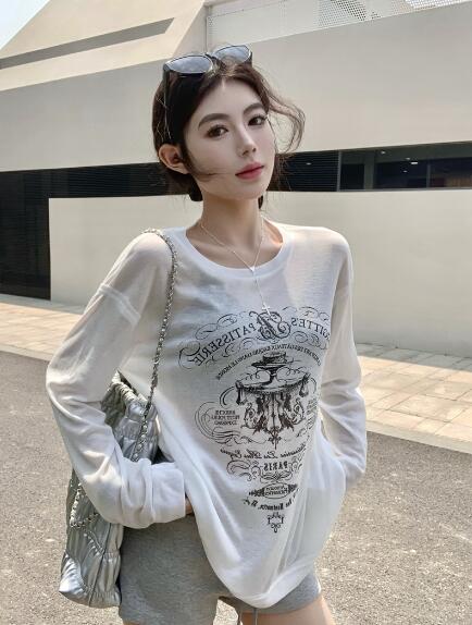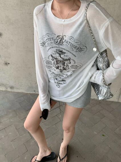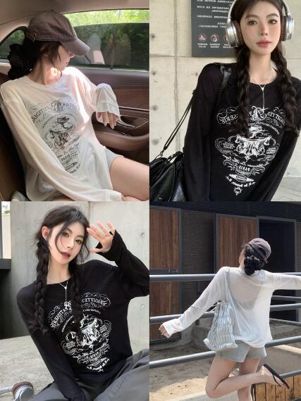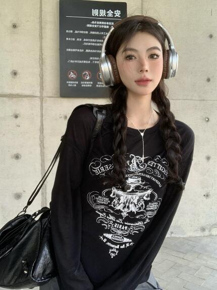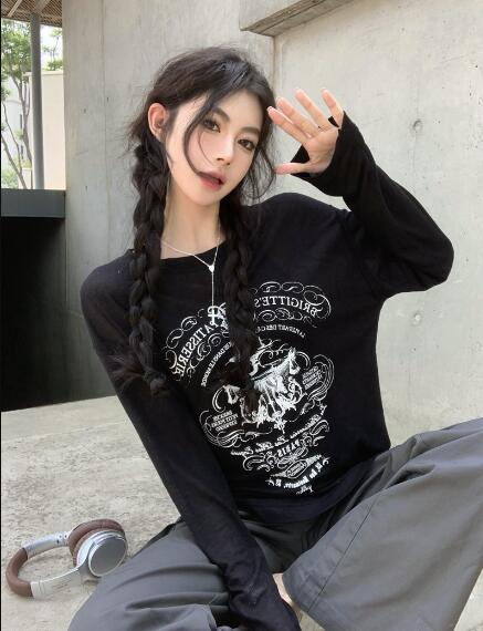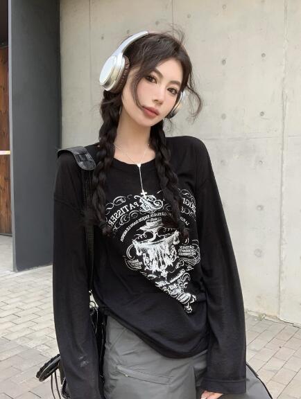 プリントトップスカットソーTシャツ長袖 トップス Tシャツ カットソー 特集 ブラック ホワイト