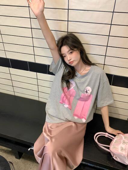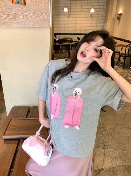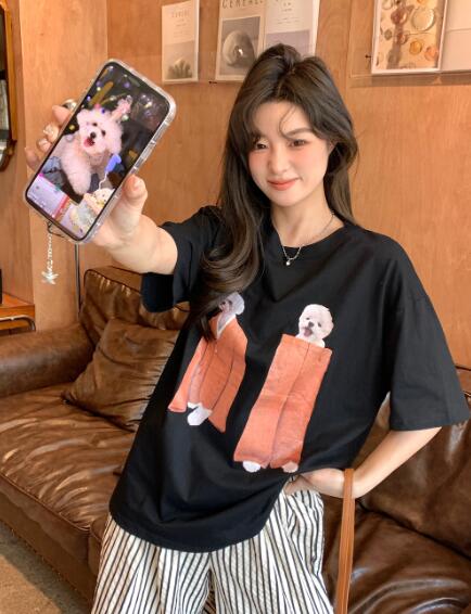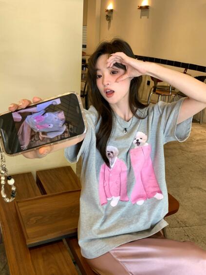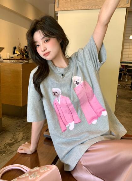 アメリカン動物犬トップスカットソーTシ レディースファッション 特集 ブラック グレー