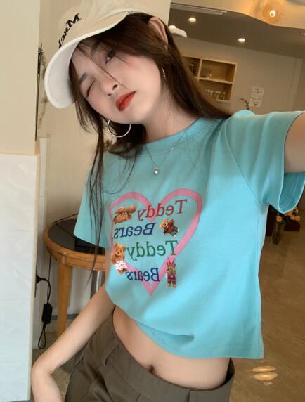 ハートトップスTシャツカットソークマベ レディースファッション 特集 ピンク ブルー
