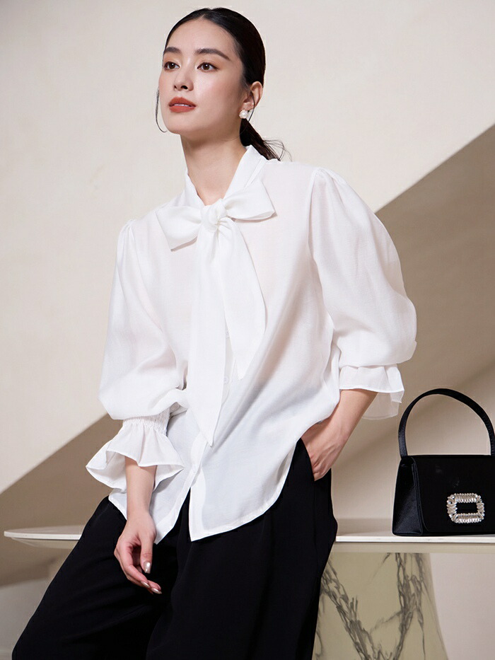 シフォンブラウス シアーブラウス ボリューム袖