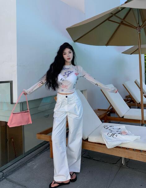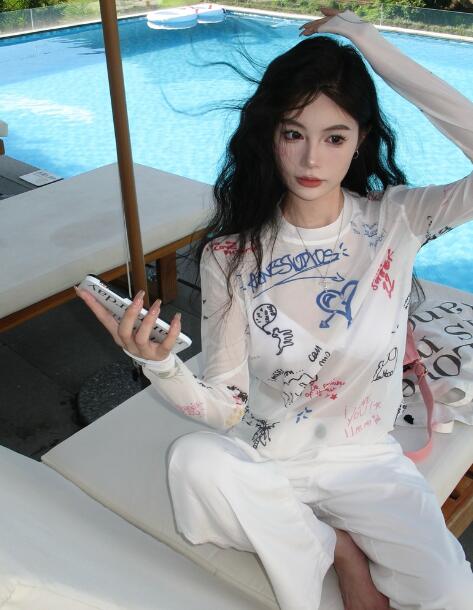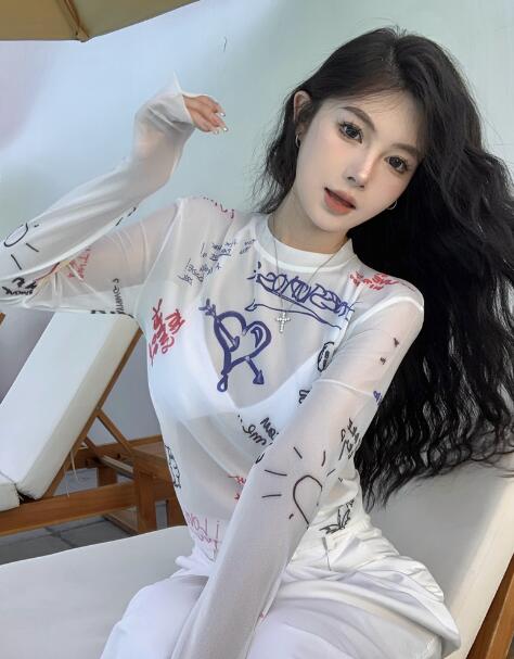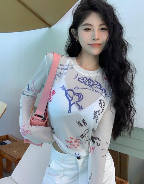 シースルートップスカットソー長袖透け感 レディースファッション 特集