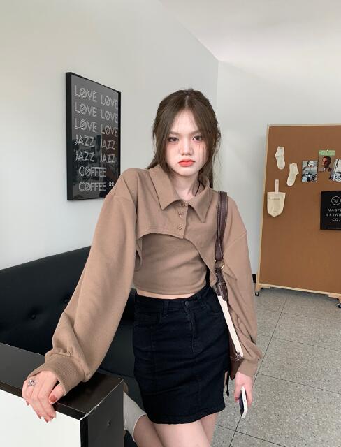 2点セットショート丈トップスキャミソー トップス Tシャツ カットソー 特集 ブラック ホワイト キャメル