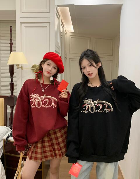 2色 ロゴパーカー長袖トップスカットソ レディースファッション 通販 ブラック レッド M L XL 2XL