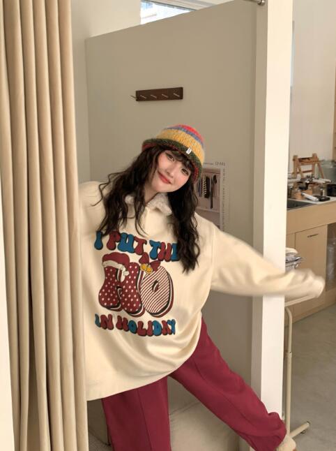 2024年新品登場ロゴ プリント トレ トップス スウェット トレーナー 特集 レッド ベージュ