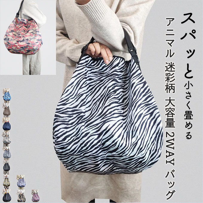カモフラ 迷彩 ゼブラ ヒョウ柄 大容量 バッグ スポーツバッグ アウトドア ジム スポーツ オシャレ ゴルフ ヨガ エコバッグ トートバッグ 旅行 アニマル 動物柄 コンパクト たためる 折りた 豹