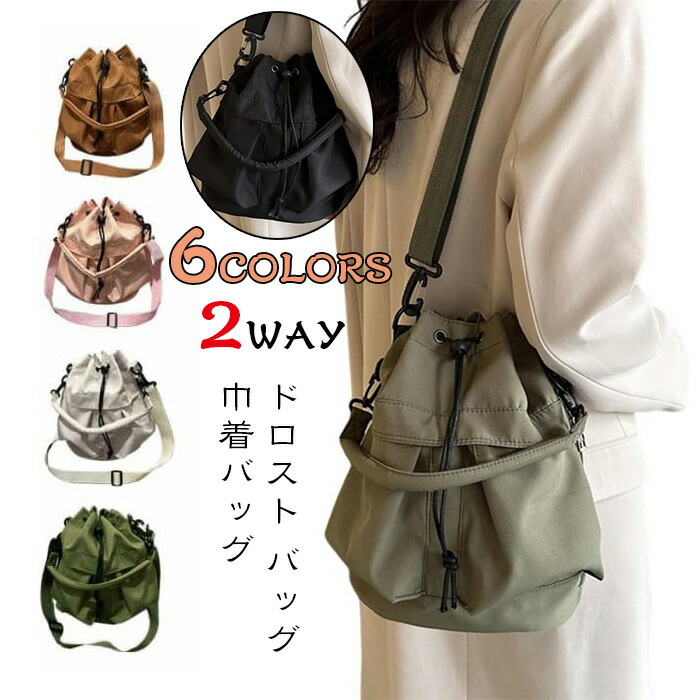 ドロスト バッグ 巾着バッグ バケットバッグ ショルダートートバッグ ダブルポケット レディース トートバッグ