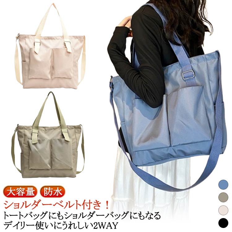 2 トートバッグ 斜め掛け バッグ 男女兼用 バッグ 撥水 防水 大容量 通勤 通学 送料無料 マチ広い ショルダーバッグ ベージュ グリーン ブルー ブラック 送料無料