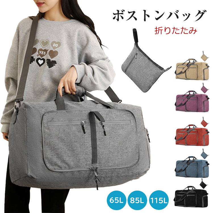 65L 85L 115L 折りたたみ ボストンバッグ 大容量 コンパクト収納可能 機内持込可 スーツケース固定可 サブバッグ 軽量 撥水 靴 ポケット 旅行 出張 スポーツバック 6色 修学旅行
