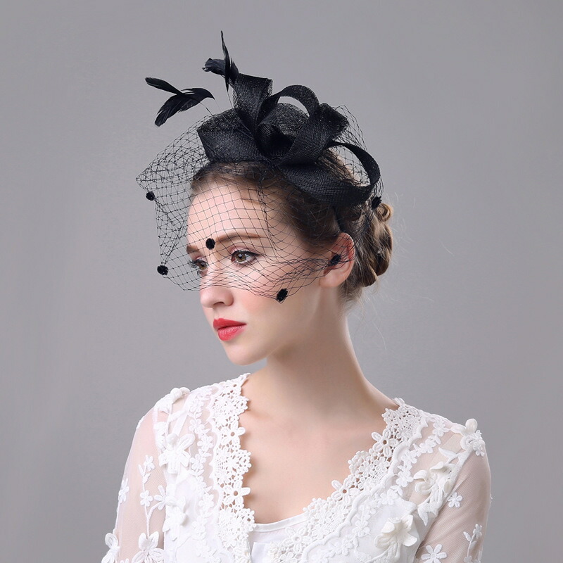 カクテル帽 パール付き リボン トーク帽 髪飾り 冠婚葬祭 ミニハット トークハット フォーマル ウェディングヘッドドレス --12961- ベール付き