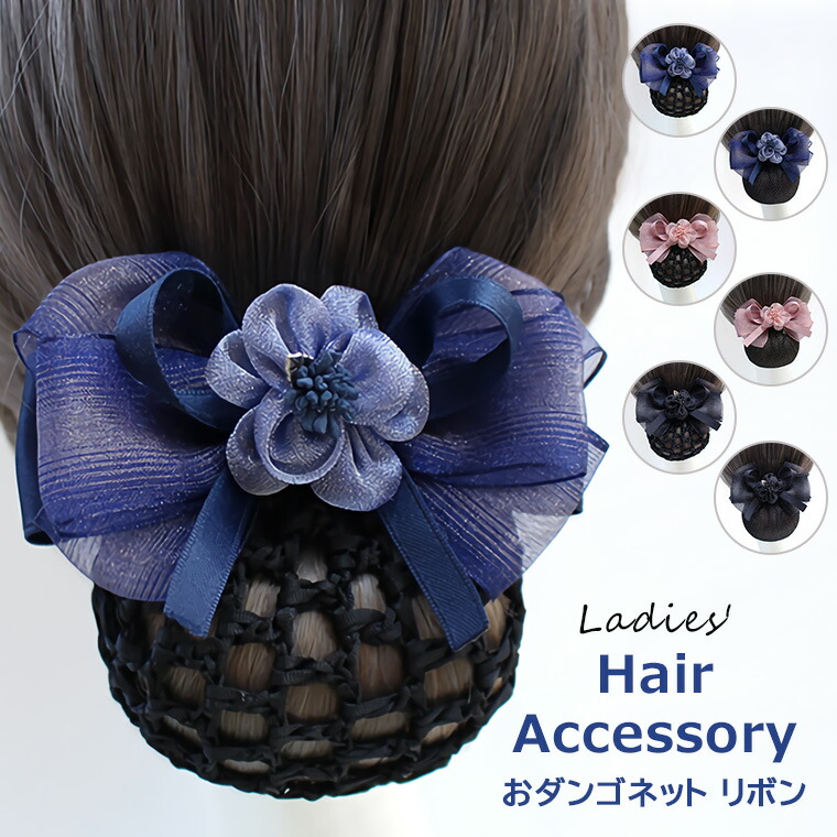 おだんごネット シニヨン 選べるネットタイプ ラフネット メッシュネット ヘアネット ヘアアクセサリーリボン フラワー お花 バレッタ付 上品まとめ髪 全3色 まとめ髪ネット