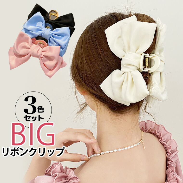 3色セット 特大 BIGリボンクリップ 大きめ ヘアクリップ リボン ビッグリボン バレッタ バンスクリップ ヘアアクセサリー 髪留め モチーフ