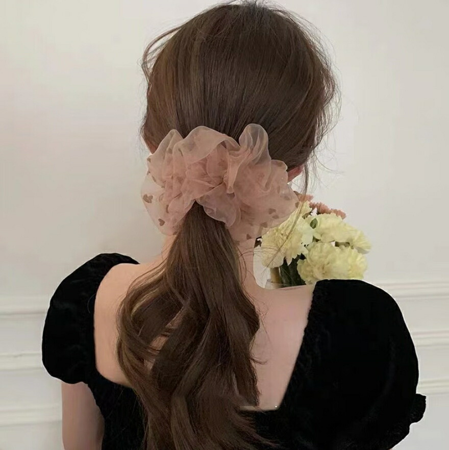 オーガンジーシュシュ ハート ビッグシュシュ ヘアゴム ボリュームシュシュ おしゃれ 大人可愛い レディースヘアアクセサリー