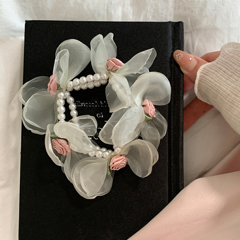 ローズパールシュシュ フラワーシュシュ オーガンジーシュシュ ヘアゴム おしゃれ 可愛い 春夏 パーティ 結婚式 レディースアクセサリー イベンド
