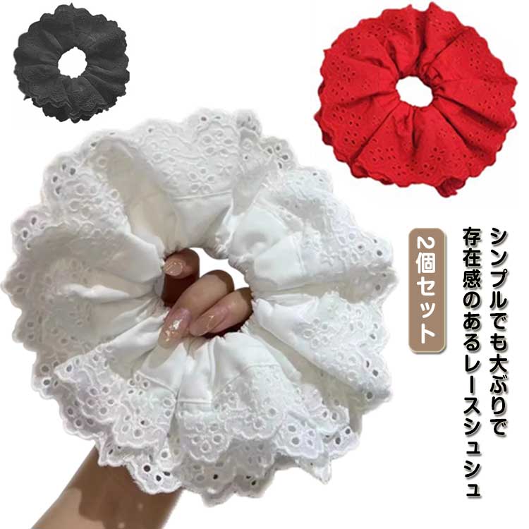 シュシュ ヘアアクセサリー 2個セット レースシュシュ レディース ヘアゴム ボリューム 上品 大人可愛い 髪留め