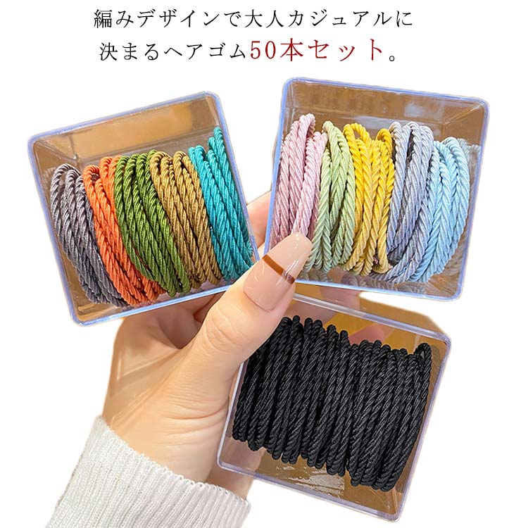送料無料 ヘアゴム 50本 シンプル 跡がつきにくい ヘアアレンジ リングゴム 可愛い 大人 髪結び ヘアアク