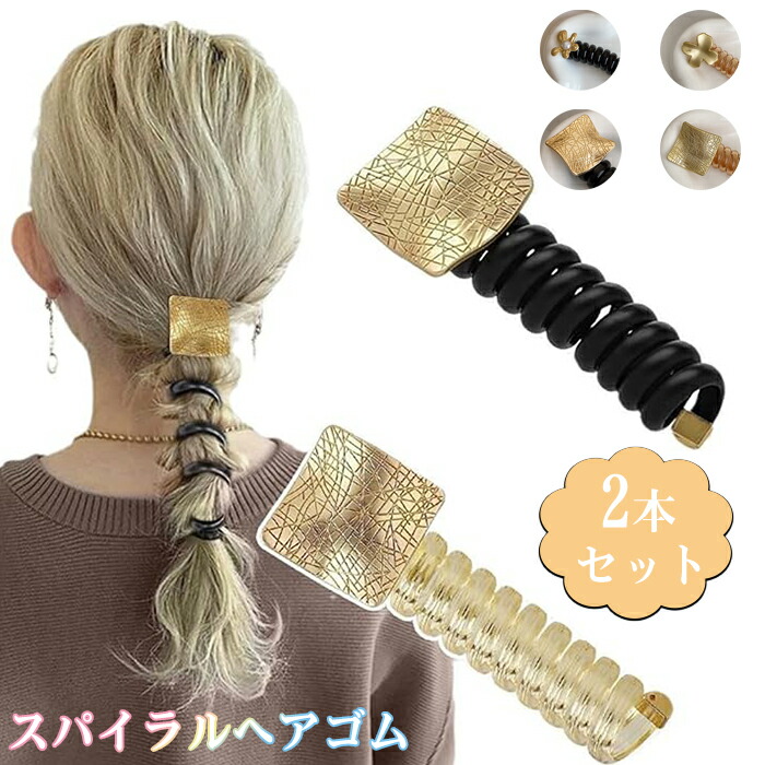 コイルポニー ワイヤーポニー スパイラルヘアゴム 2本セット 飾りつきヘアゴム 人気 可愛い おしゃれ 跡がつかない アレンジ自在 全年 使用 入学式 結婚式 デート レディース 大人っぽい 卒業式