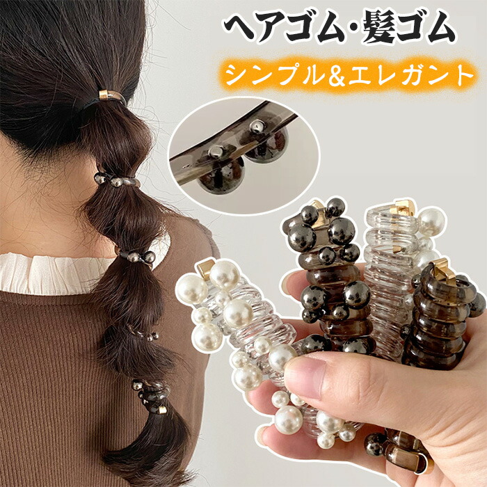ヘアゴム 髪ゴムコイルポニー パール ヘアゴム ヘアアクセサリー コイルアップ 髪留め 髪飾りワイヤーポニー 軽量 髪飾りシンプルブラック