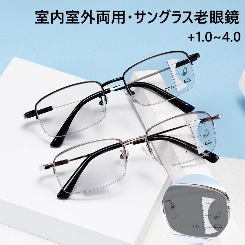 老眼鏡 おしゃれ 調光 サングラス レディース メンズ ブルーライトカット 遠近両用 紫外線カット uvカット 変色 シニアグラス リーディンググラス 女性 男性 軽量 眼鏡 男女兼用 PC用 メガネ