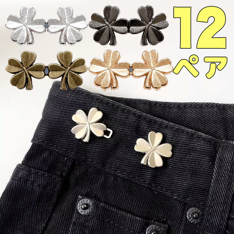 今だけ12組 四つ葉クローバーウエストクリップ ウエストクリッパー ウエスト調整 ボタン ウエスト 調整 クリップ ズボン パンツ スカート サイズ調整 縫い付け不要 ベルト ウエストアジ サイズ直し