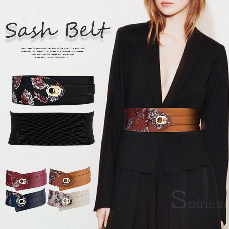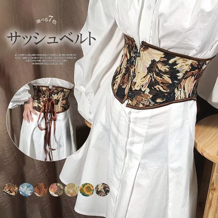 エレガントな雰囲気に レディース サッシュベルト コルセット ハイウエスト 太ベルト 総柄 和風 着物 帯 着物帯 コスプレ 鼓衣装 ウエストマーク