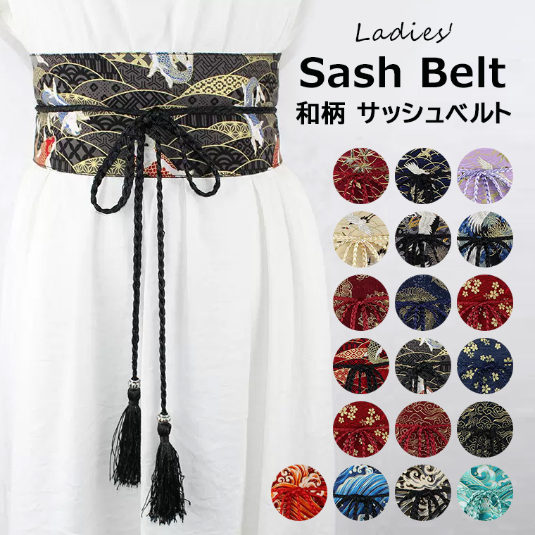 浴衣などでのアレンジを楽しんでもGOOD♪選べる19種類 サッシュベルト 太ベルト コルセット レトロ ベルト 浴衣着物帯 和柄 鶴柄 着物 ウエストマーク コスプレ 帯締め風 帯
