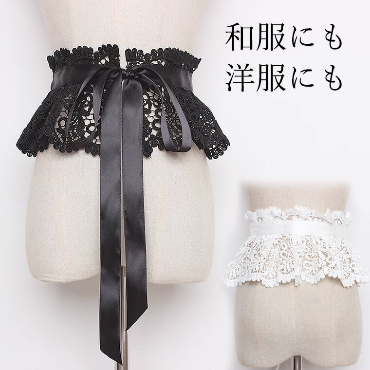 和装にも洋装にも レディース 幅広レース サッシュベルト コルセット ハイウエスト 太ベルト レース 幅広ベルト 黒 白 フリル ロリータ ロリータファッション リボン