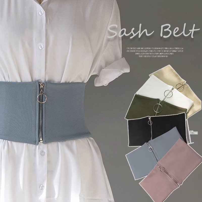 ウエストを細くみせる 全5色 伸縮性 サッシュベルト コルセット ワイドベルト 太ベルト フェミニン スタイリッシュ ファッション小物