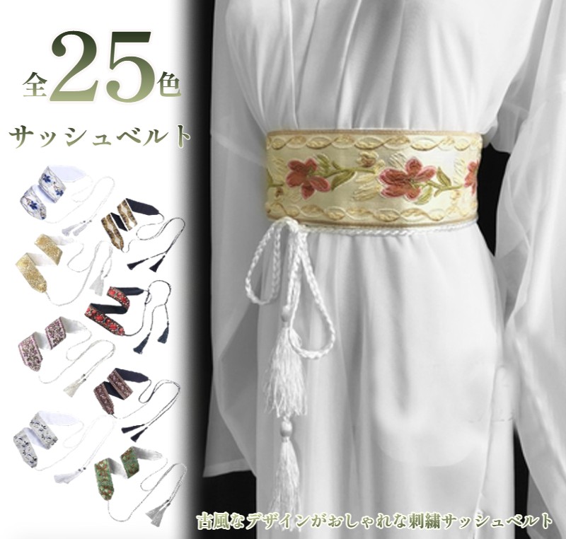 古風なデザインがおしゃれな サッシュベルト 選べる25柄 刺繍 レディース ハイウエスト 帯締め風の飾り紐 スリムベルト 和柄 花柄 着物 帯 フリンジ タッセル 女性用 ウエストマーク