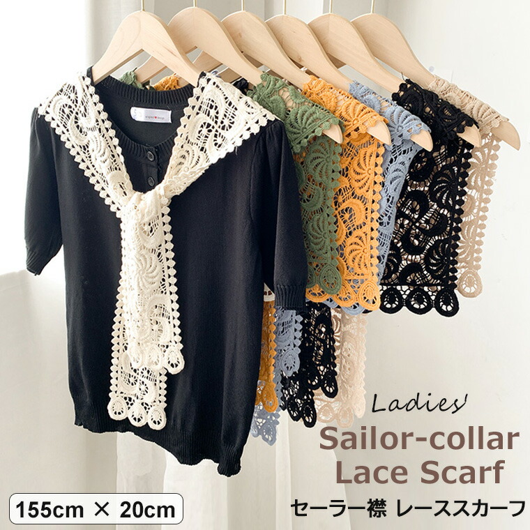 スカーフ レース セーラー襟 レディース レディーススカーフ 付け襟 セーラー襟スカーフ 155×20cm 大人カジュアル 春 夏 日焼け対策 ファッション小物 レディースファッション 全6色 首