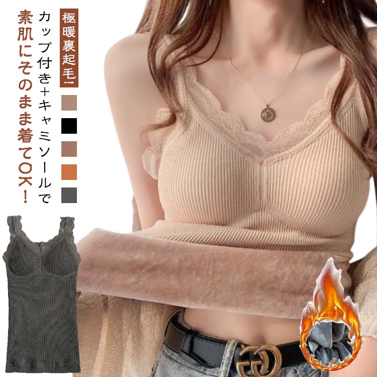 タンクトップ 肌着 通学 裏起毛 暖かい カップ付き 極暖 レディース ナイトブラ キャミソール 部屋着 インナー レース 防寒 着る毛布 通勤 ヒートテック オフィス ママ 自転車 ボア 冬
