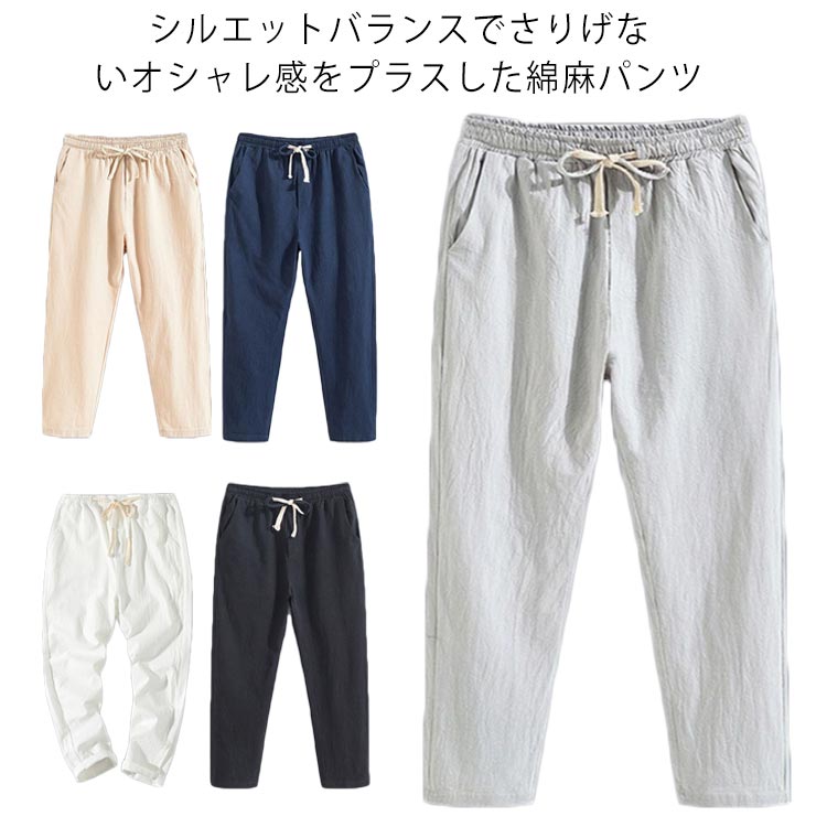 【送料無料】9分丈 メンズ 綿麻パンツ ボトムス リネンパンツ テ