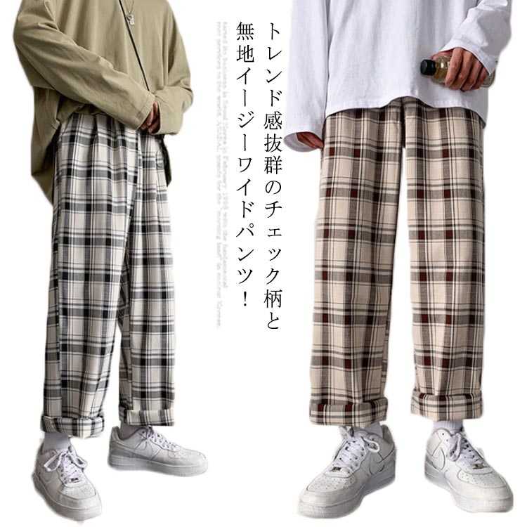 ワイドパンツ チェックパンツ メンズ 夏 チェック柄 パンツ ボトムス スボン 春 夏 秋 カジュアル ユニセックス