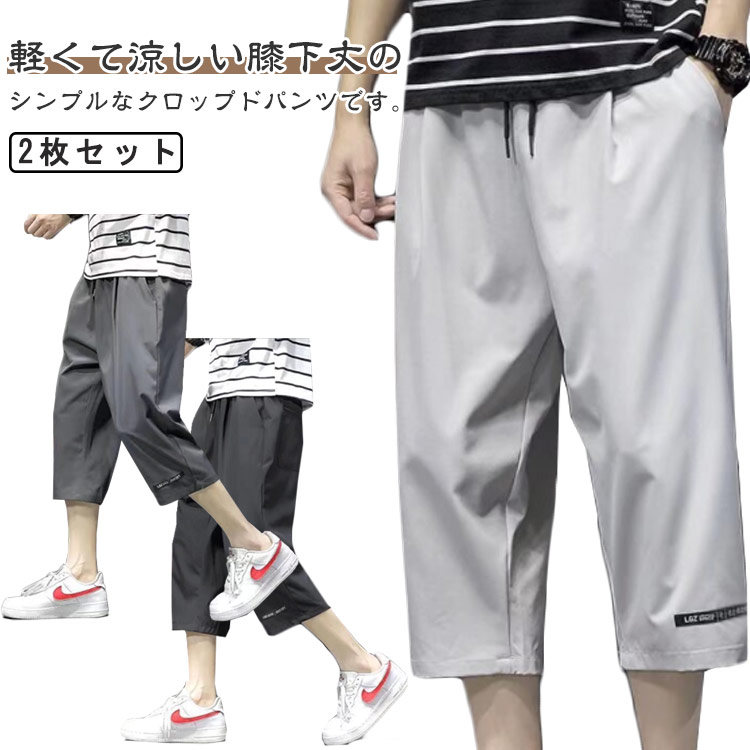 イージーパンツ メンズ 2枚セット 七分丈ズボン クロップド丈 スウェットパンツ スリム ウエストゴム